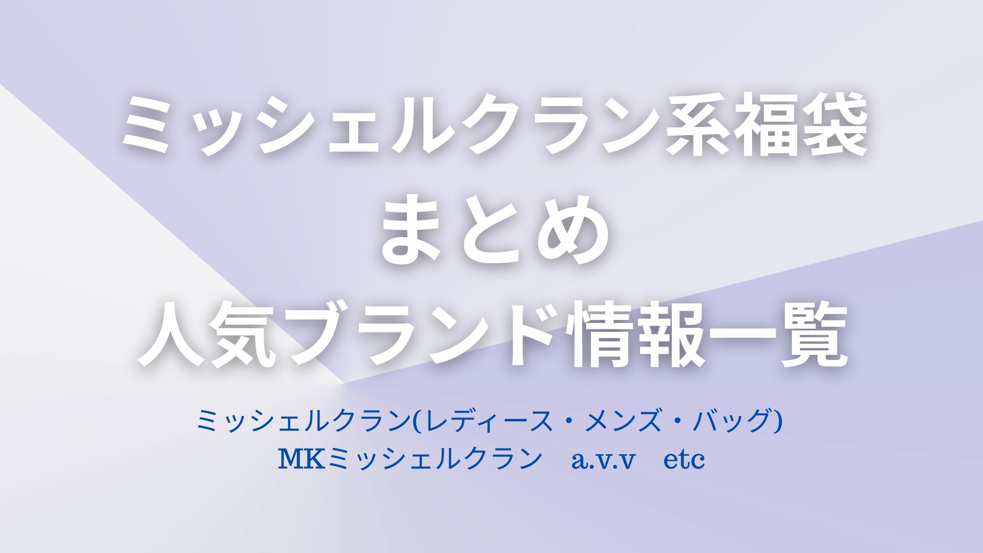 【2026年福袋】MKミッシェルクラン・オム・バッグ・a.v.v完全ガイド!予約開始日・中身・購入方法まとめ